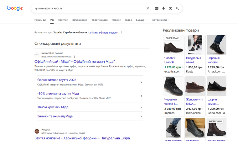 Пример: человек гуглит «купить обувь Харьков», видит ссылку на ваш сайт и переходит.